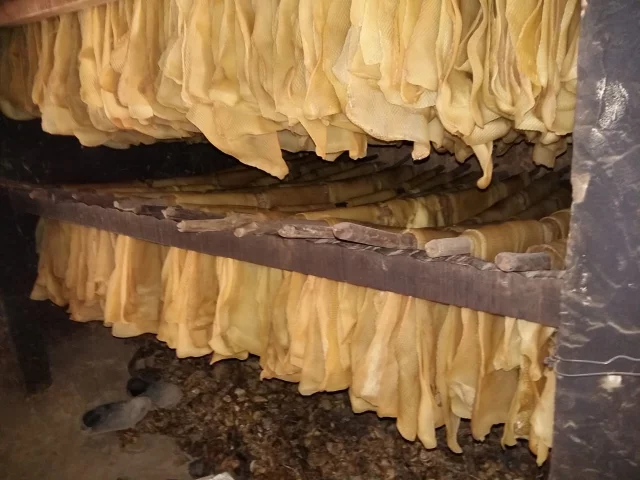 কাটা রাবার শিটগুলো শুকানোর জন্য বিশেষ চেম্বারে রেখে দেওয়া হয়। পর্যাপ্ত শুকানোর পর শিটগুলোকে আগুনে তাপ দেওয়া হয়। এই তাপ দেওয়ার ফলে রাবার শিট লালচে বাদামি রঙ ধারণ করে এবং আরও টেকসই হয়ে ওঠে। এভাবেই তৈরি হয় আমাদের দৈনন্দিন জীবনে ব্যবহৃত রাবার শিট।